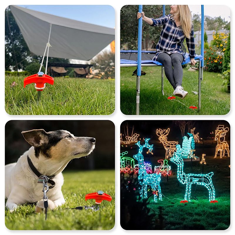 [TÖBBCÉLÚ]: Akár a sátor, napellenző, pop-up, előtető, pavilon, vagy akár a kutyapóráz, karácsonyi dekoráció, újévi dekoráció rögzítésére, a fúrható sátorcölöpökkel mindent el tudsz látni.